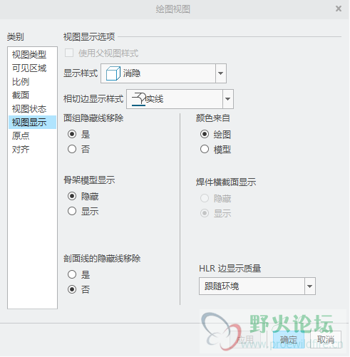 liurunxing 发表于 2017-9-23 15:48 在dtl文件中设置如下选项, 新建的视图就不显示隐藏线了。