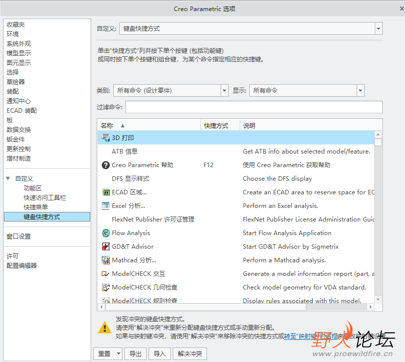xingtian915 发表于 2021-12-8 15:23 我使用5.0,试了下3楼所说的方式 F1确实被替换掉了 不过看Creo3.0好像没有这个呢,楼主再研究下吧